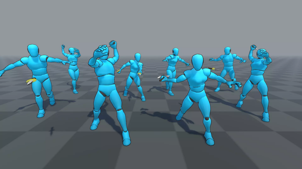 - Walk (8 directions, 2 m/s, root motion and in-place)